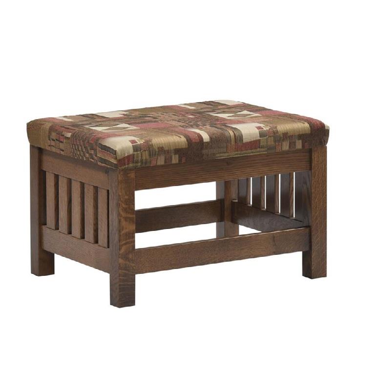 The Liberty Mission Ottoman is Shown in Rustic Quarter Sawn White Oak with a Michaels finish. Fabric is 3359-K Crimson (YTW)