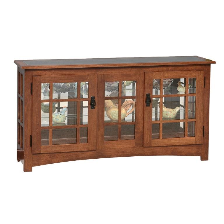 The Mission Console Curio is shown in Cherry with a Medium finish. (TLF)